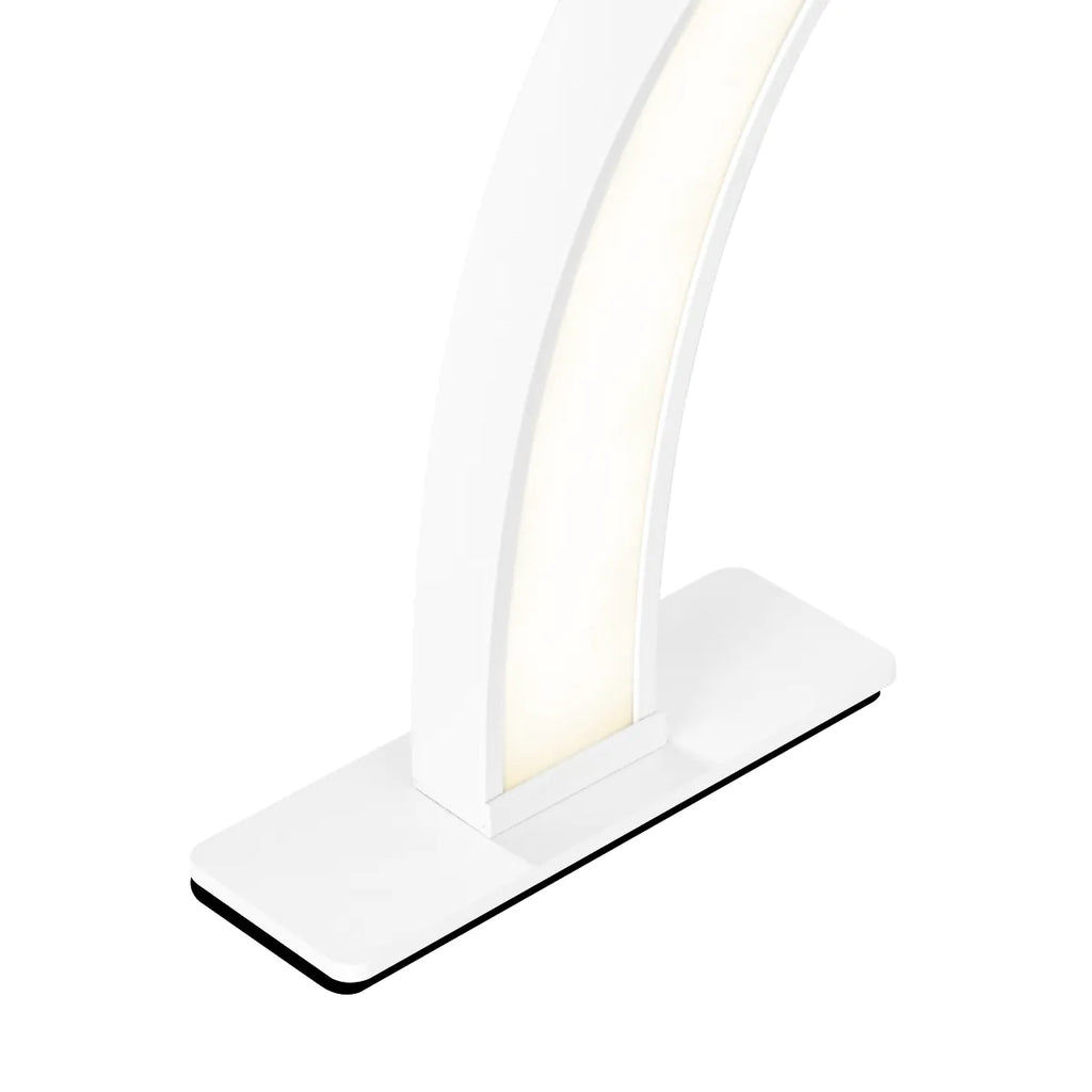 Minimālistiskais dizains klasiskā baltā tonī lieliski iederas jebkurā interjerā. Loka forma piešķir lampai modernu un atšķirīgu izskatu. Neslīdošā pamatne nodrošina stabilitāti darba laikā. Plastmasas un metāla elementi padara ierīci izturīgu un viegli kopjamu.