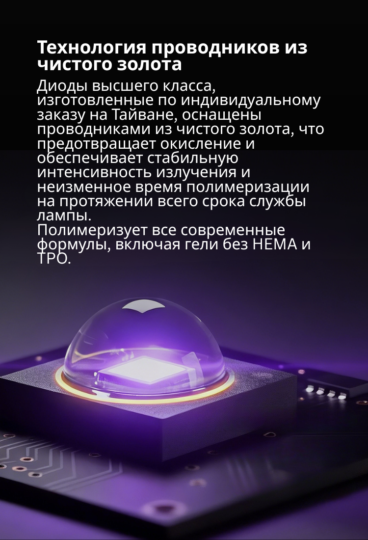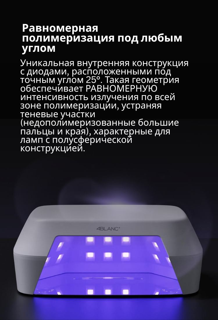 ✔ 36 стратегически расположенных LED-диодов для равномерного покрытия всех пальцев рук и ног